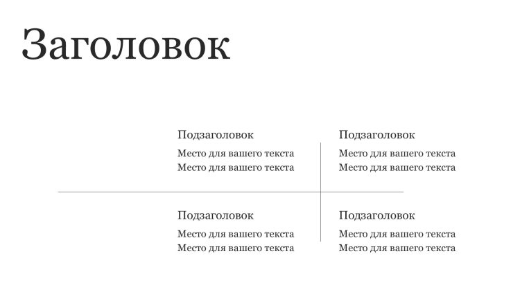 Шаблон презентации Белый также включает в себя различные варианты макетов слайдов, которые позволят вам организовать информацию логично и эффективно.