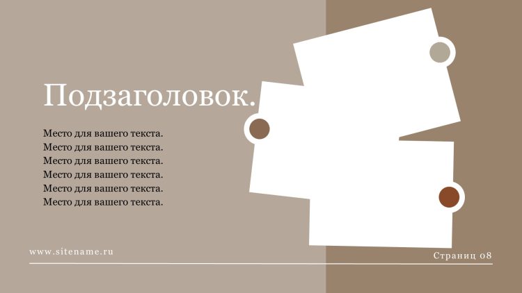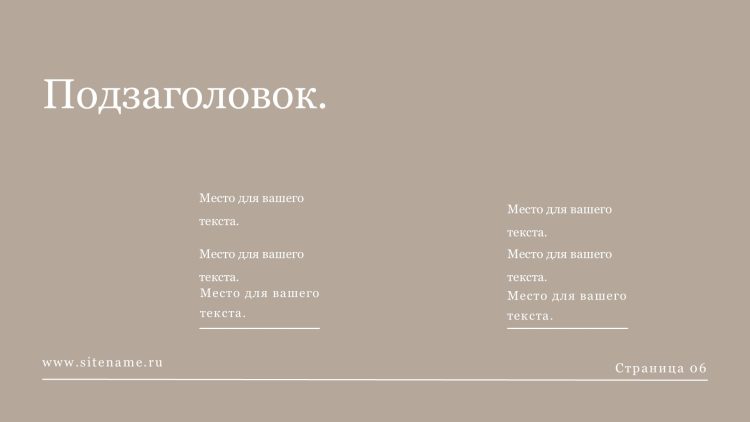 Шаблон презентации Бежевый также включает в себя различные варианты макетов слайдов, которые позволят вам организовать информацию логично и эффективно.
