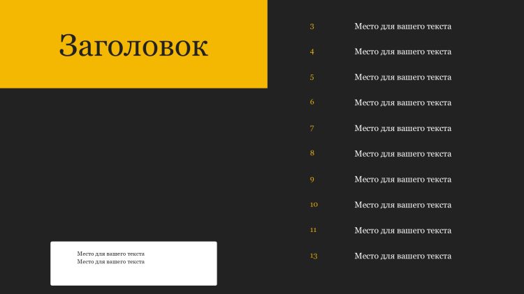 Черно-желтый шаблон презентации #1 – Универсальный.