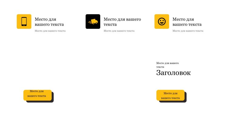 Черно-желтый шаблон презентации также включает в себя различные варианты макетов слайдов, которые позволят вам организовать информацию логично и эффективно.