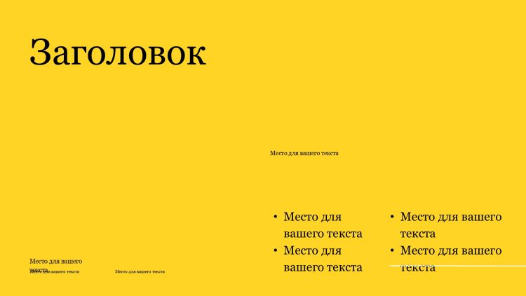 Черно-желтый шаблон презентации также включает в себя различные варианты макетов слайдов, которые позволят вам организовать информацию логично и эффективно.