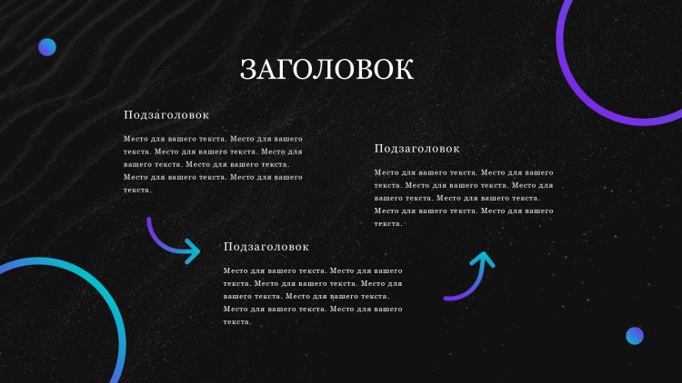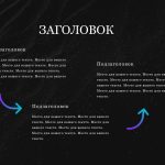 Черный шаблон презентации также включает в себя различные варианты макетов слайдов, которые позволят вам организовать информацию логично и эффективно.