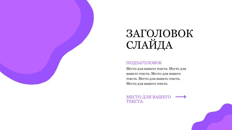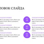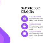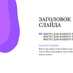 Фиолетовый шаблон презентации также включает в себя различные варианты макетов слайдов, которые позволят вам организовать информацию логично и эффективно.