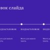 Фиолетовый шаблон презентации включает в себя несколько различных слайдов, каждый из которых разработан с учетом потребностей и требований презентации.