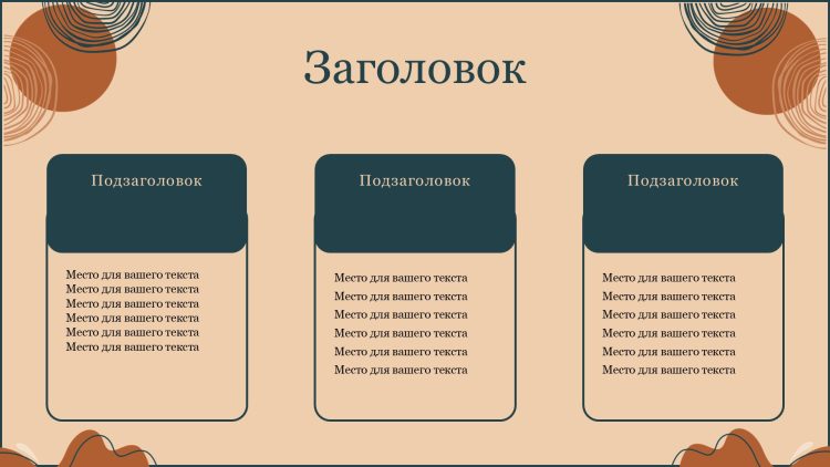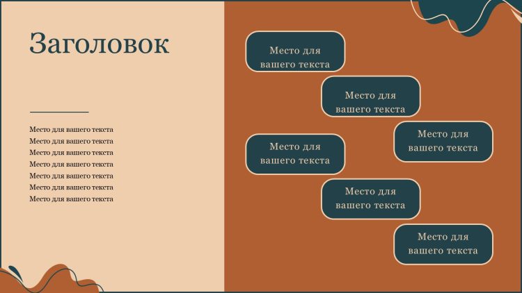Одной из главных особенностей этого шаблона является его цветовая гамма. Коричневый цвет придает презентации элегантность и утонченность, создавая приятную атмосферу и привлекая внимание аудитории. Коричневый цвет также ассоциируется с надежностью и стабильностью. Это поможет укрепить доверие к вашему сообщению.