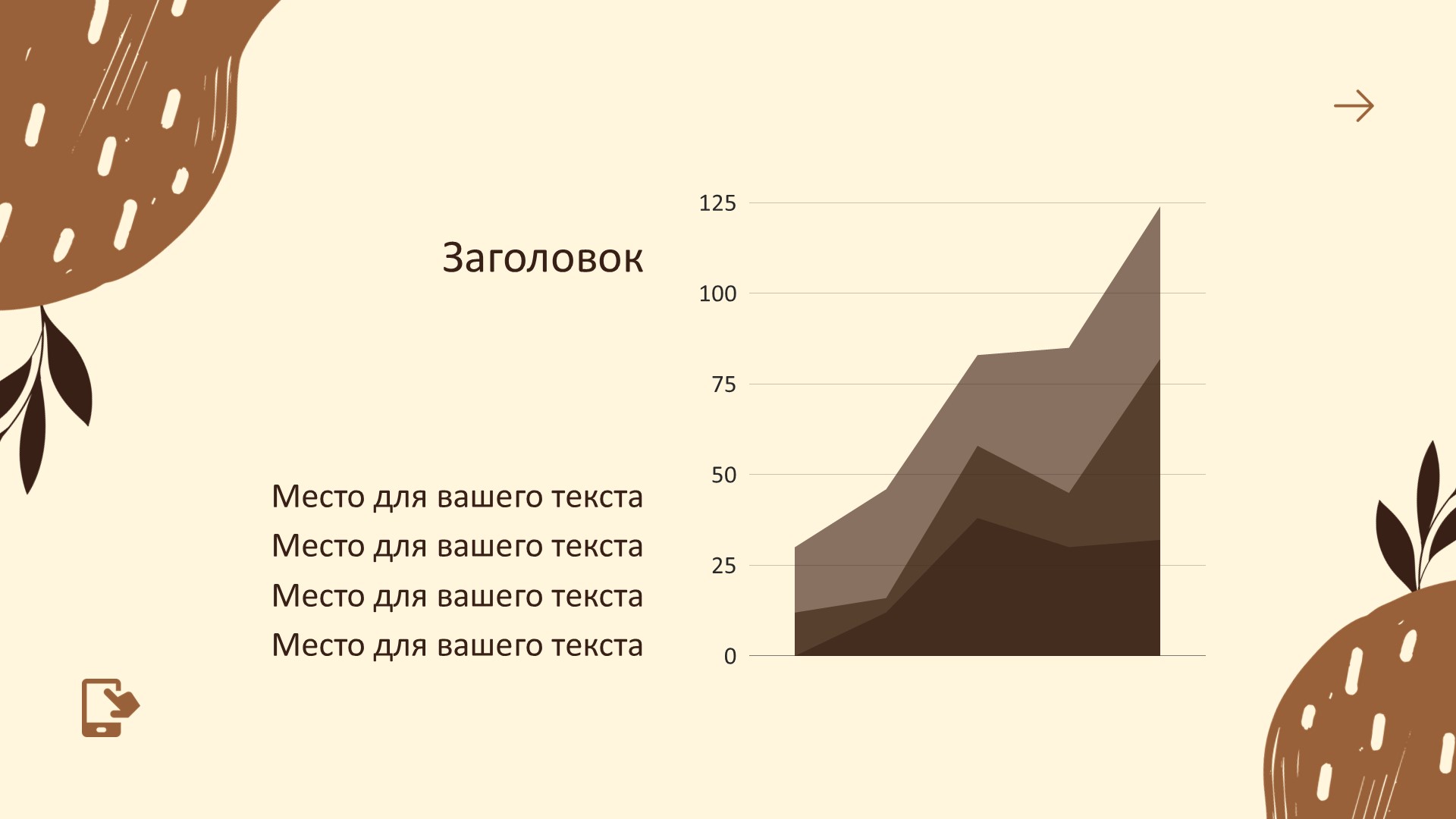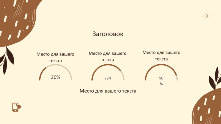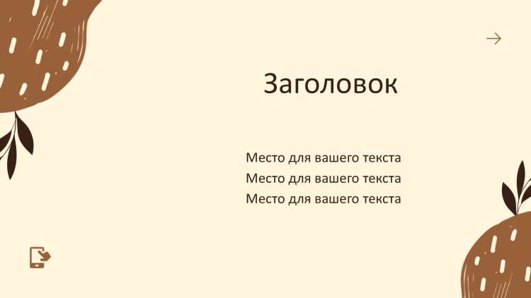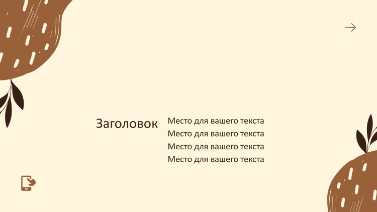 Коричневый шаблон презентации также включает в себя различные варианты макетов слайдов, которые позволят вам организовать информацию логично и эффективно.
