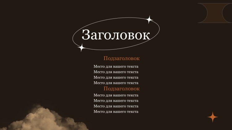 Одной из главных особенностей этого шаблона является его цветовая гамма. Коричневый цвет придает презентации элегантность и утонченность, создавая приятную атмосферу и привлекая внимание аудитории. Коричневый цвет также ассоциируется с надежностью и стабильностью. Это поможет укрепить доверие к вашему сообщению.