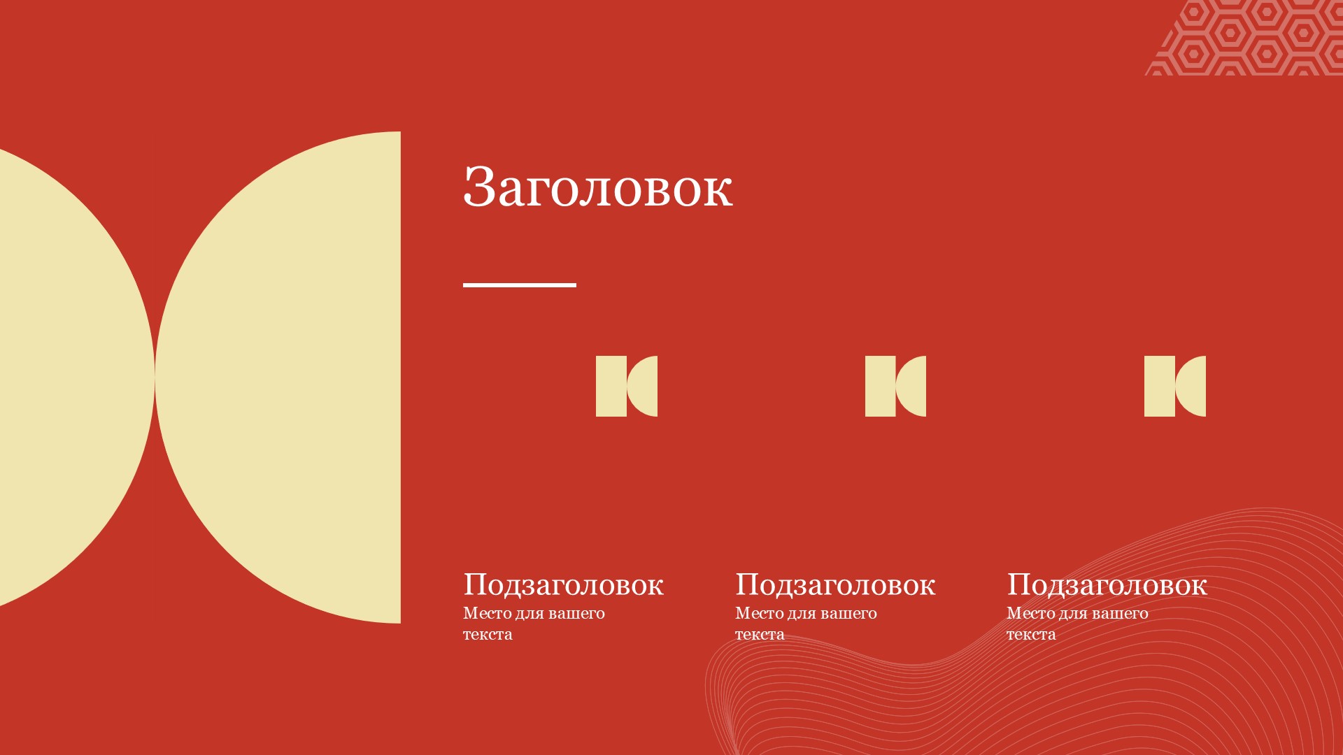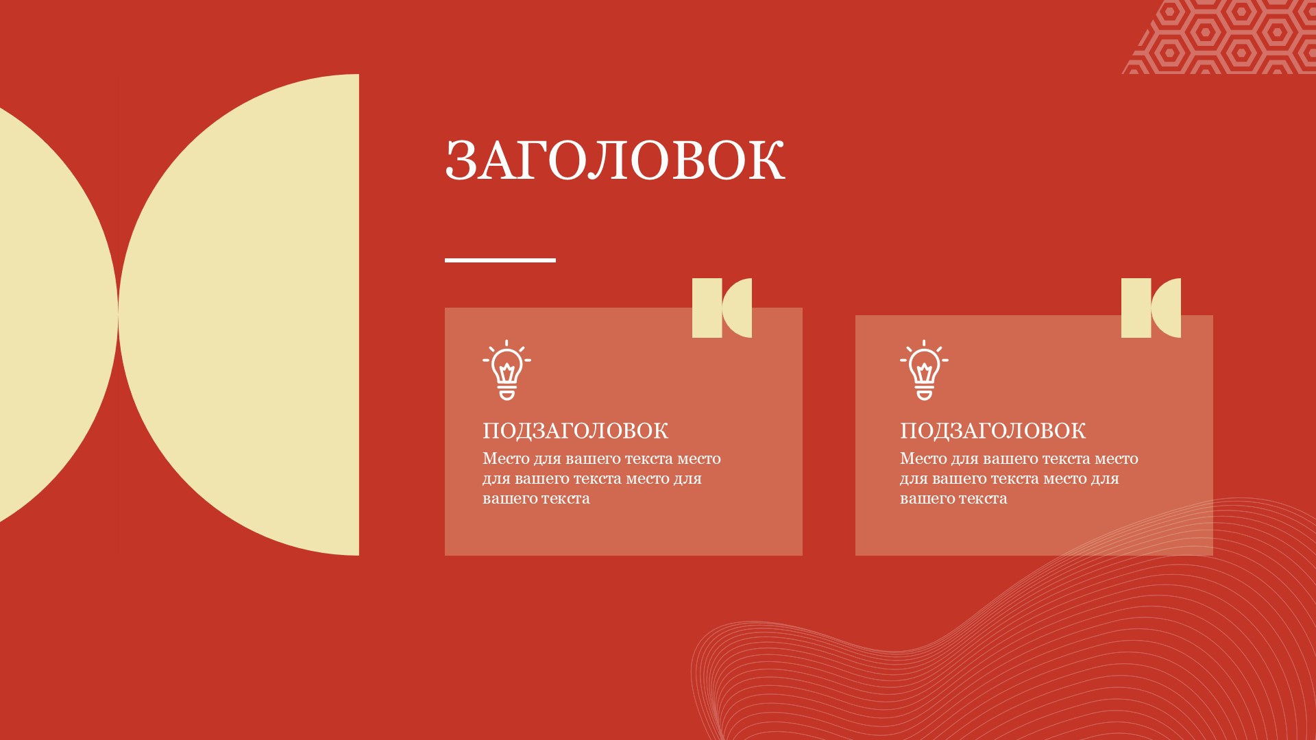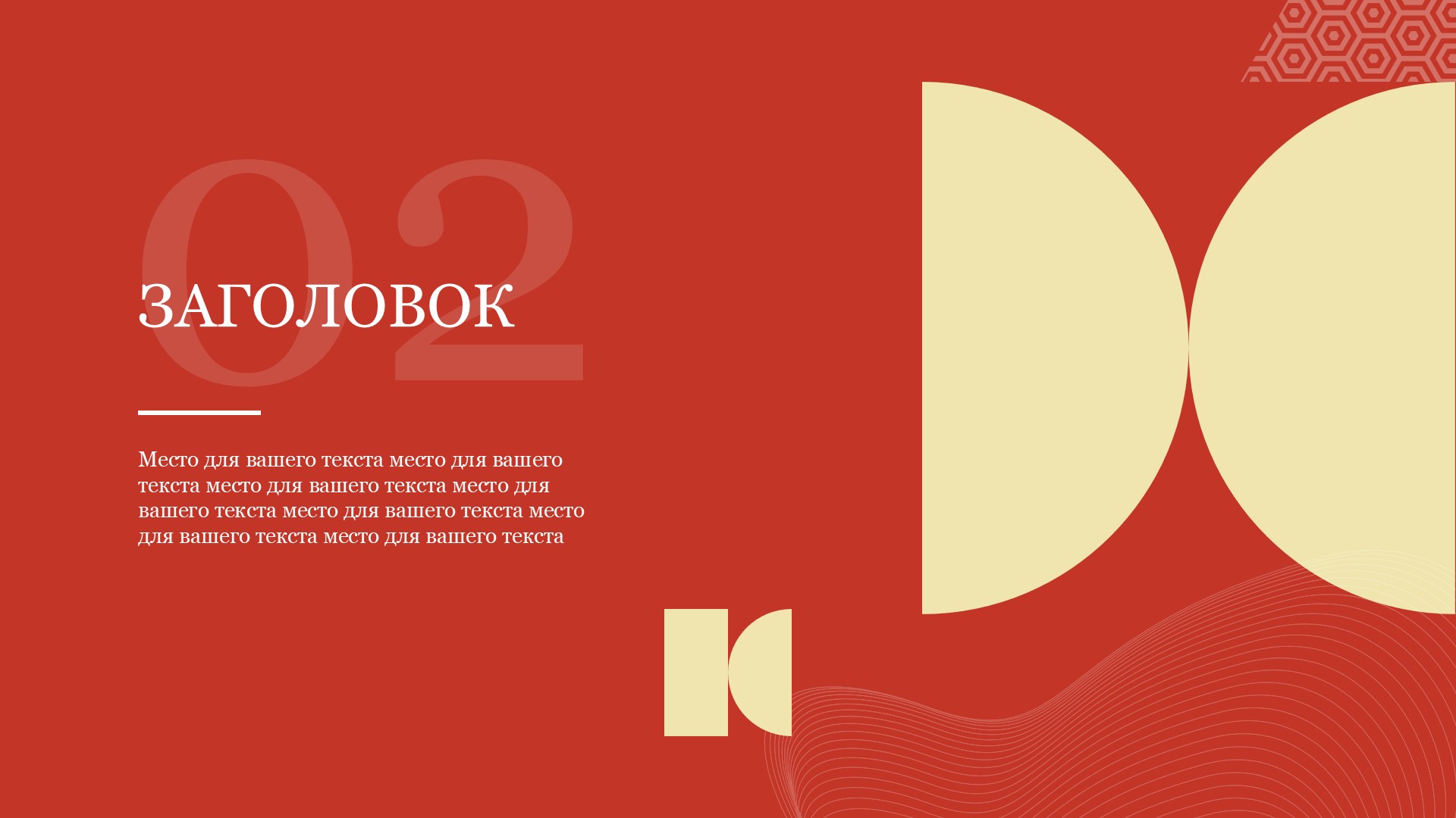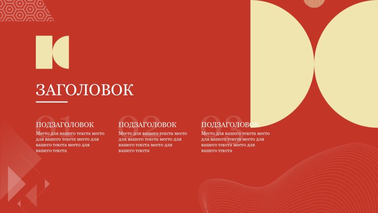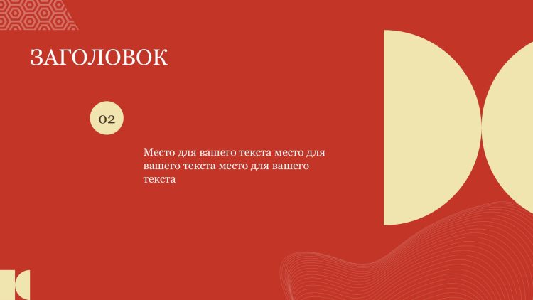 Шаблон выполнен в яркой красной цветовой гамме, которая символизирует энергию, страсть и силу. Он идеально подходит для презентаций, связанных с инновациями, маркетингом, продажами или любыми другими темами, где требуется передать эмоциональную составляющую вашего сообщения.