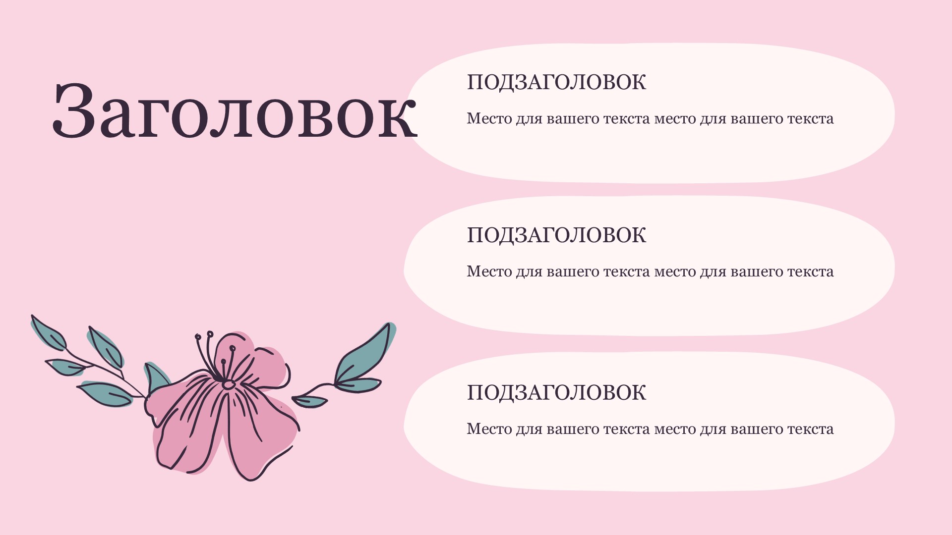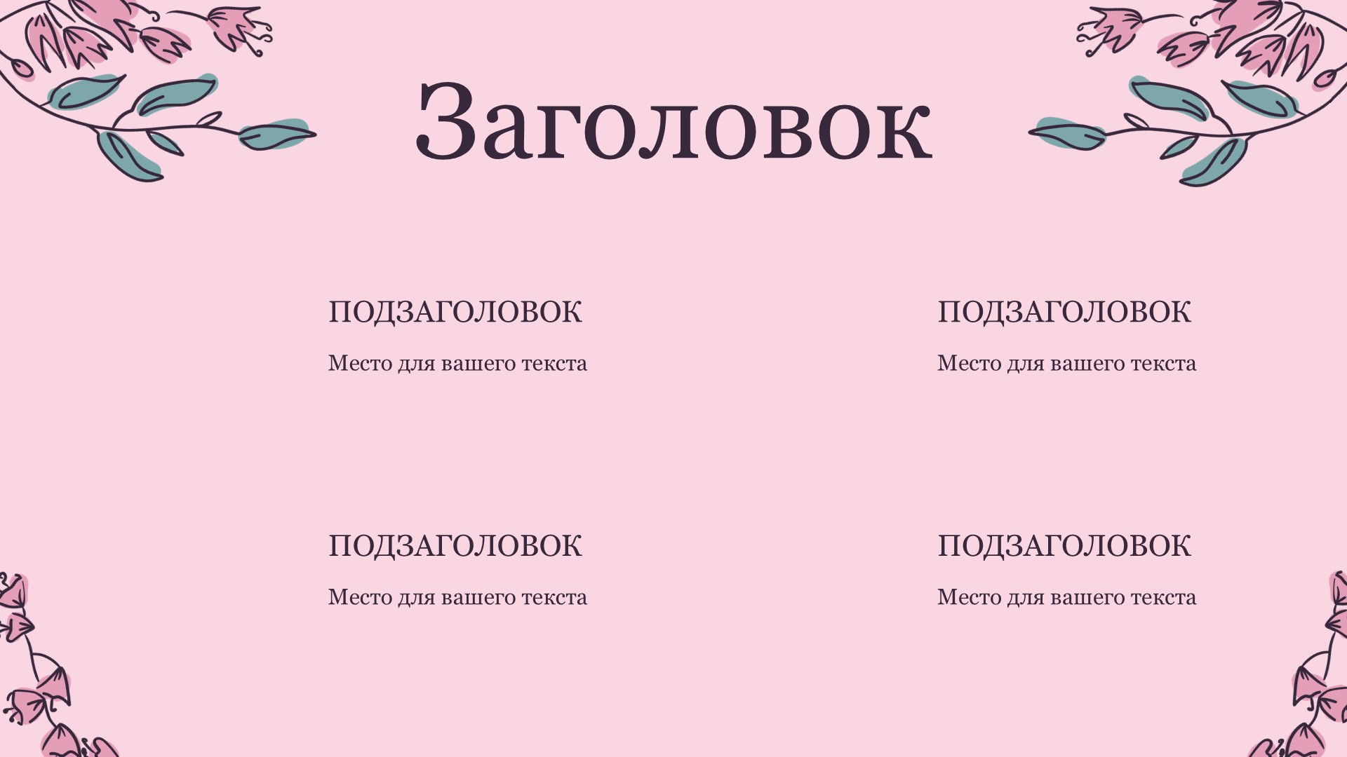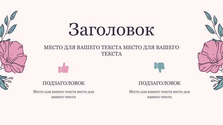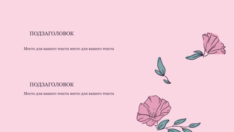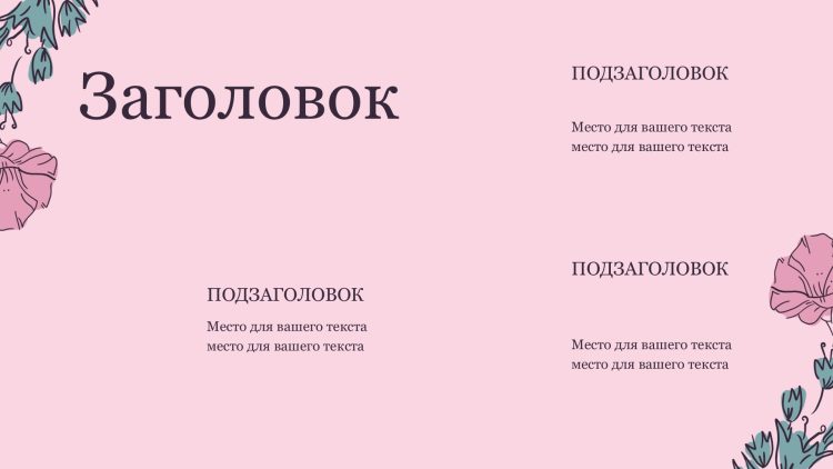 Шаблон презентации Розовый также включает в себя различные варианты макетов слайдов, которые позволят вам организовать информацию логично и эффективно.