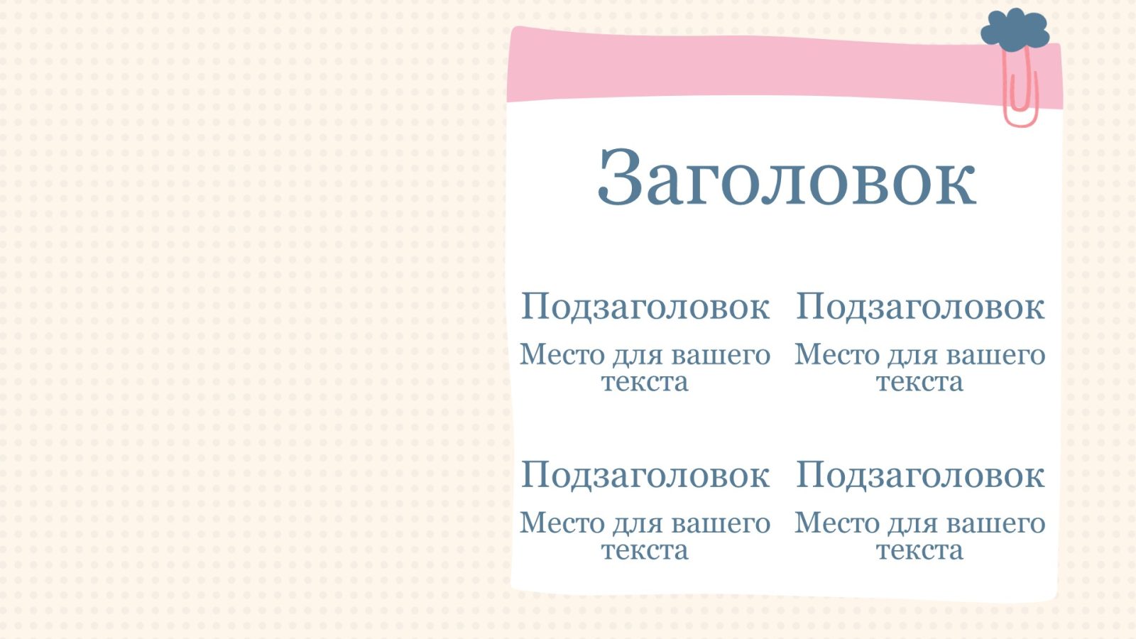 Смотрите также: Розовый шаблон презентации #6 – Универсальный