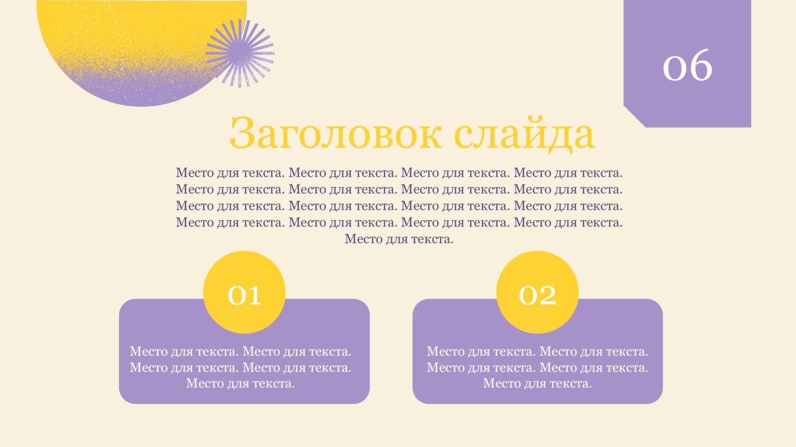 Сиреневый цвет шаблона придает ему особую привлекательность и создает атмосферу спокойствия и гармонии. Он идеально подходит для различных тематик презентаций, будь то бизнес, образование, маркетинг или личное использование. Вы сможете легко настроить шаблон под свои нужды, добавив свой текст, изображения и графики.