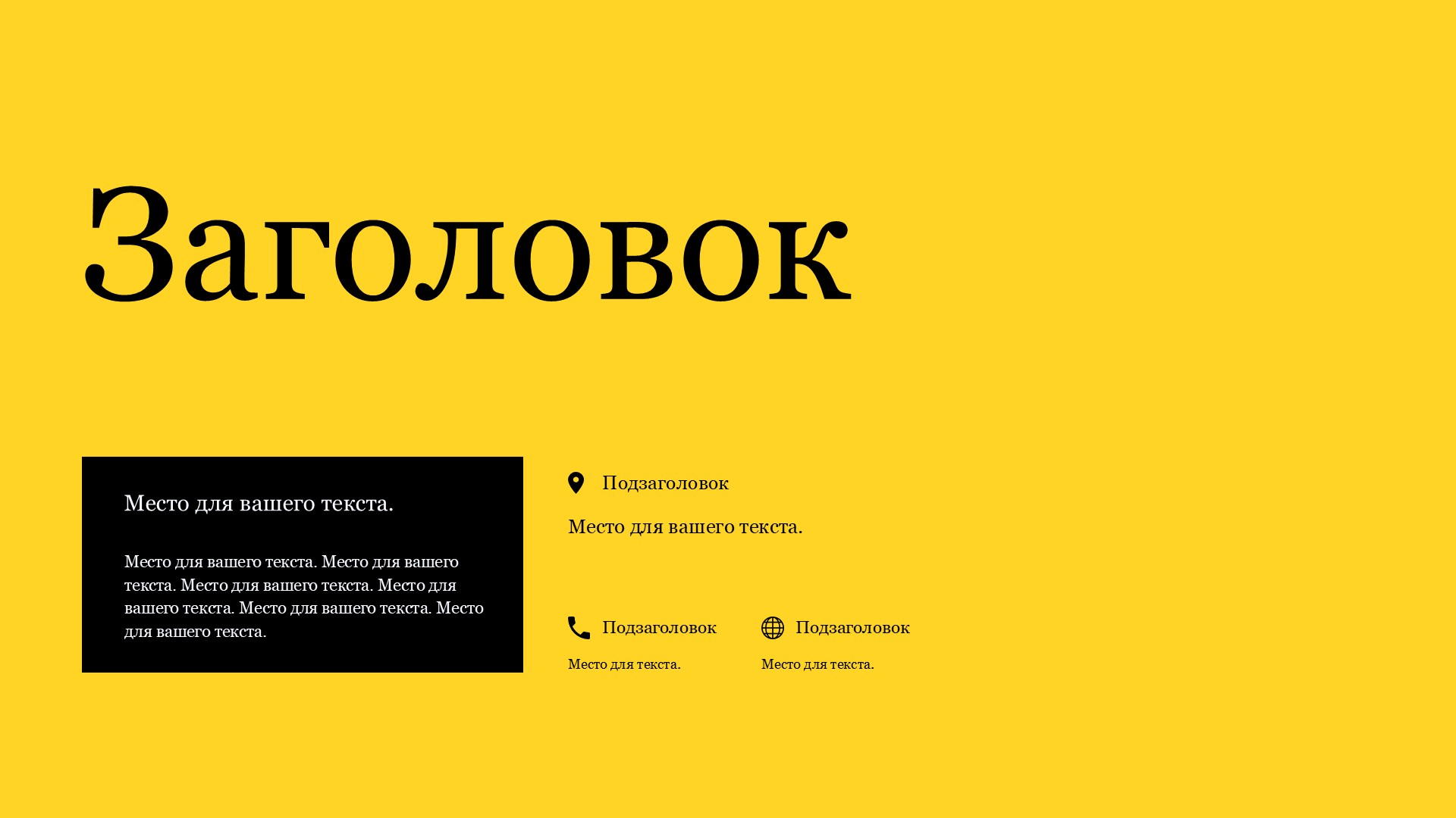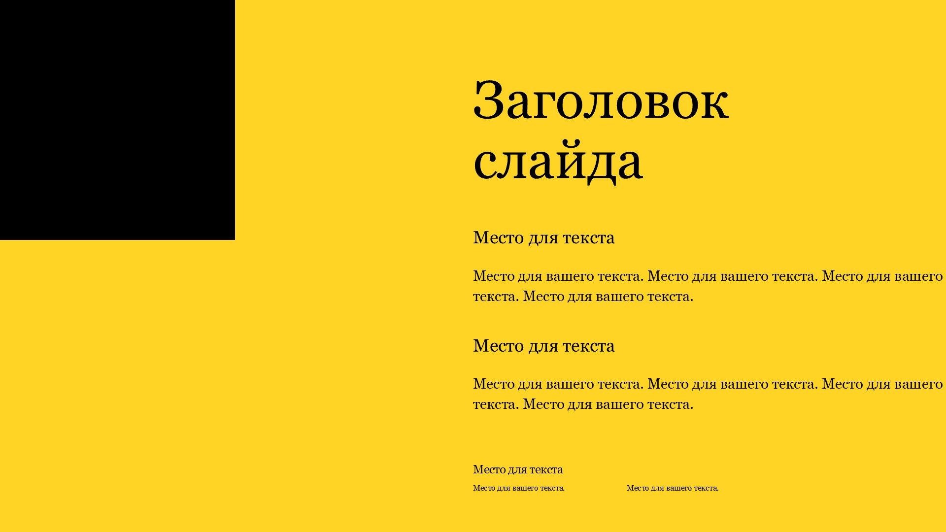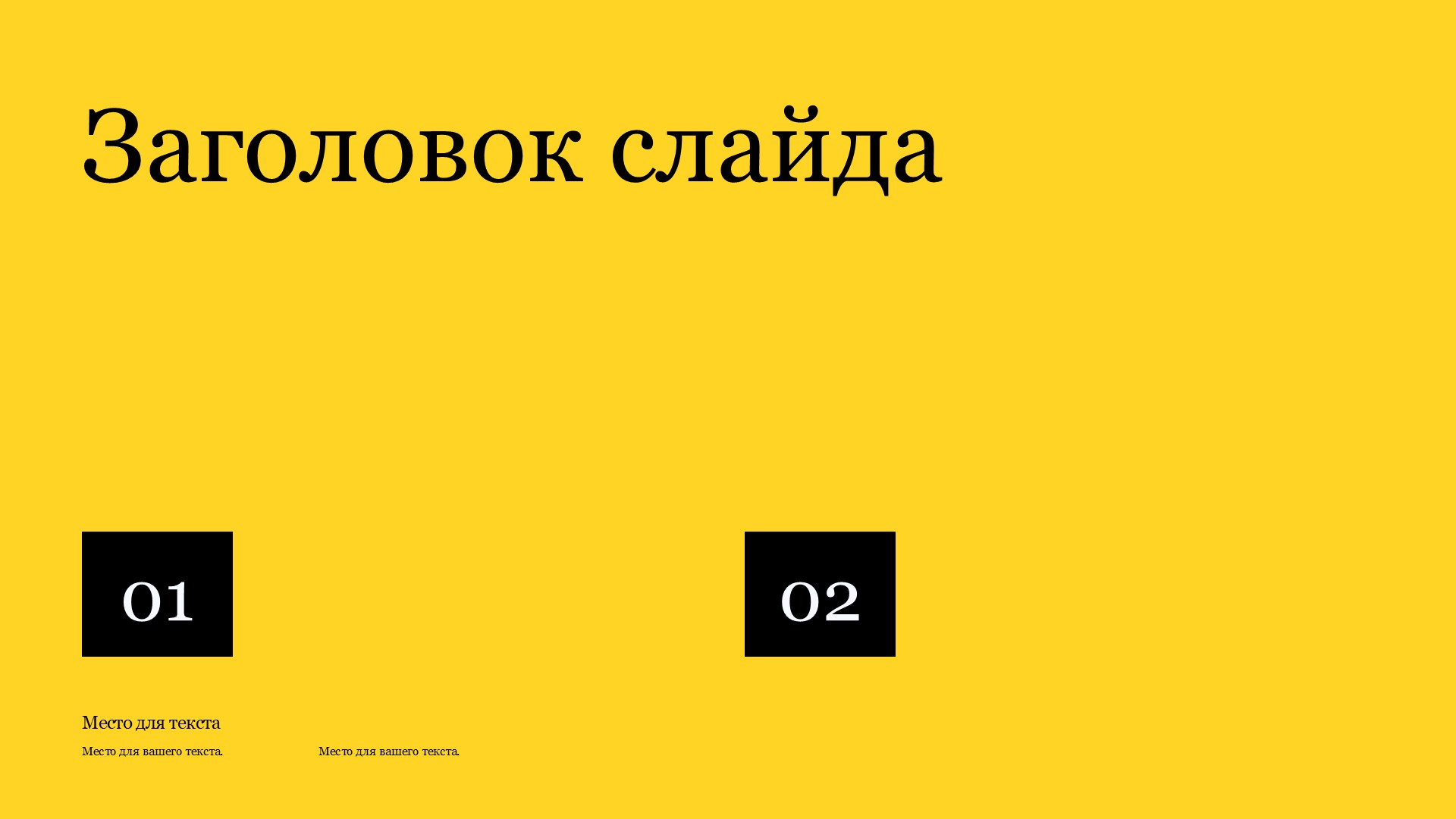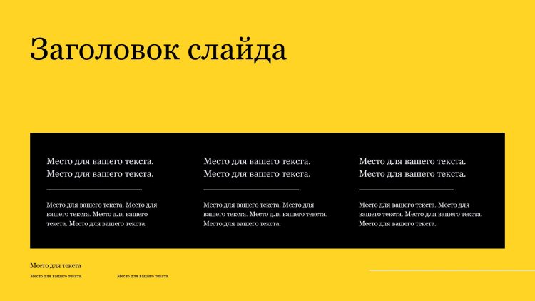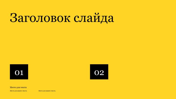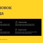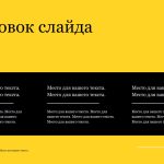 Шаблон презентации Желтый также включает в себя различные варианты макетов слайдов, которые позволят вам организовать информацию логично и эффективно.