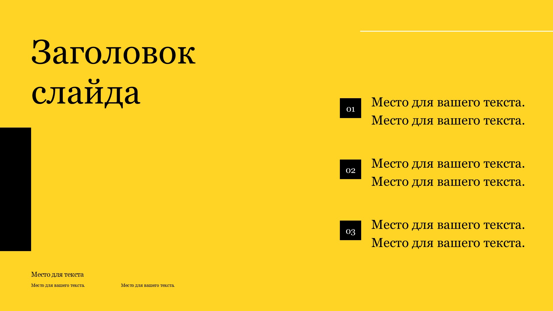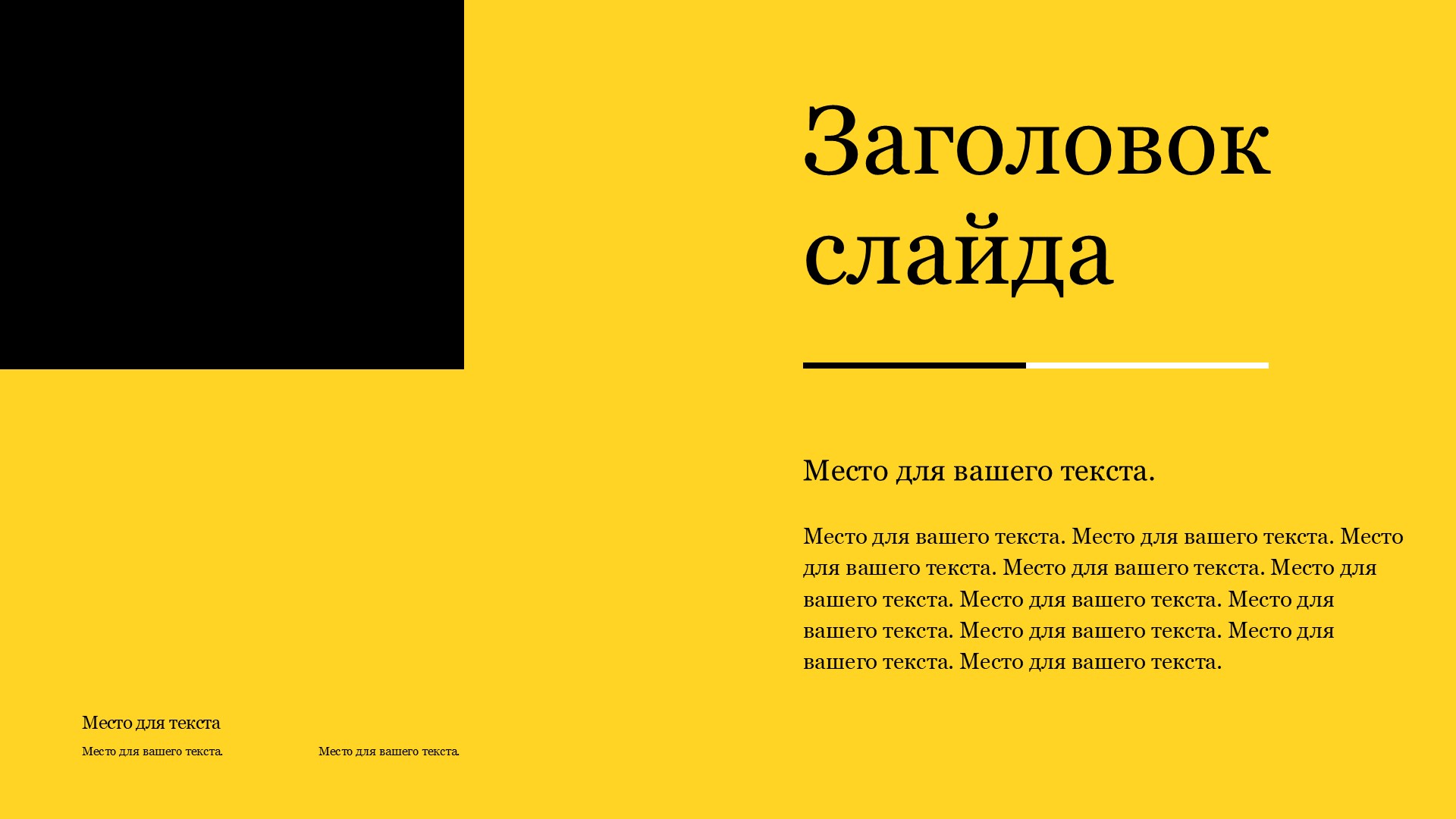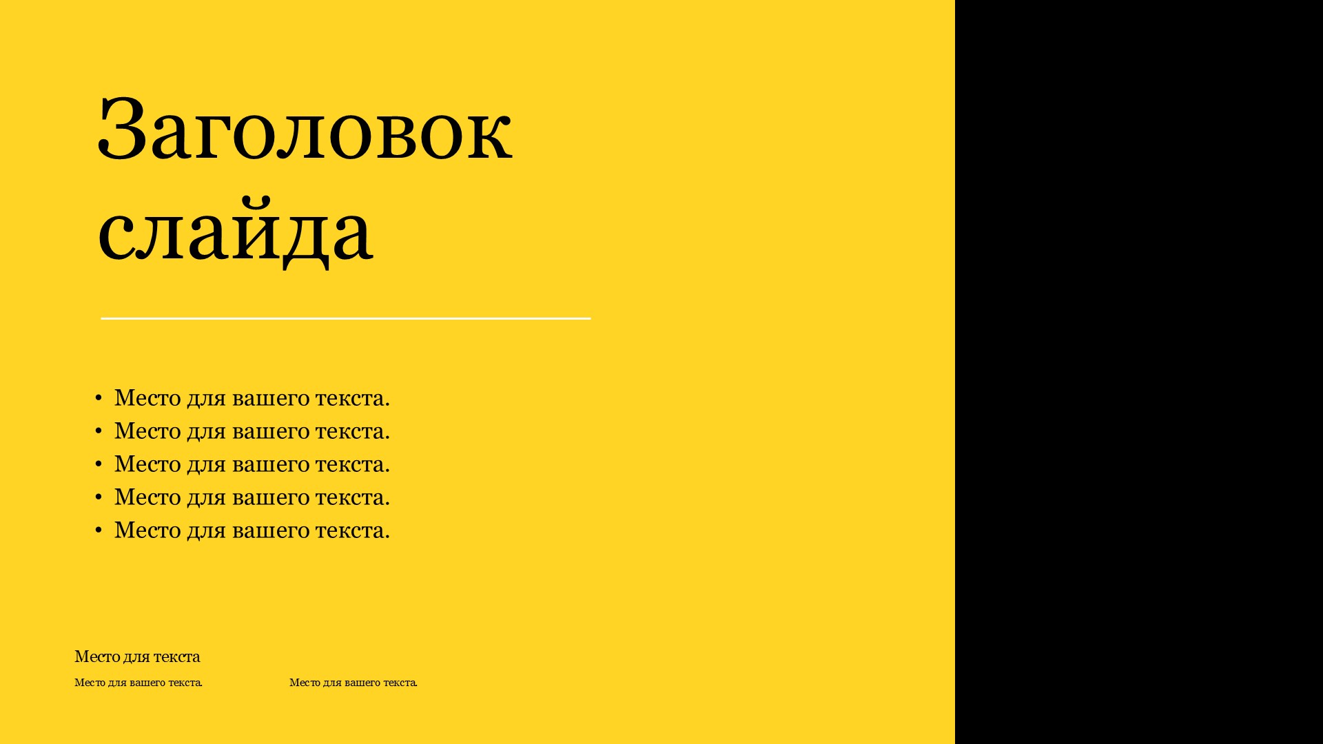 Шаблон презентации Желтый – это идеальное решение для создания стильных и профессиональных презентаций. Он представляет собой уникальный дизайн, выполненный в яркой и энергичной желтой цветовой гамме, которая привлекает внимание и создает позитивное настроение.