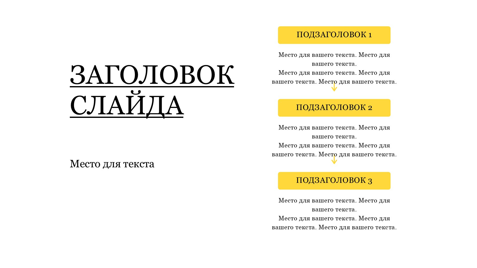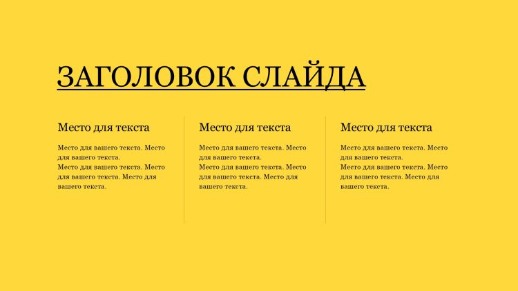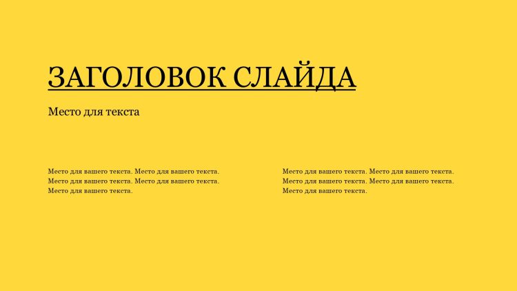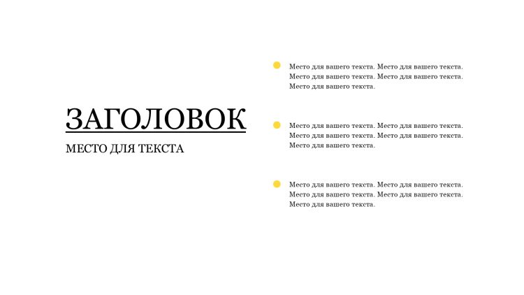 Шаблон презентации Желтый также включает в себя различные варианты макетов слайдов, которые позволят вам организовать информацию логично и эффективно.