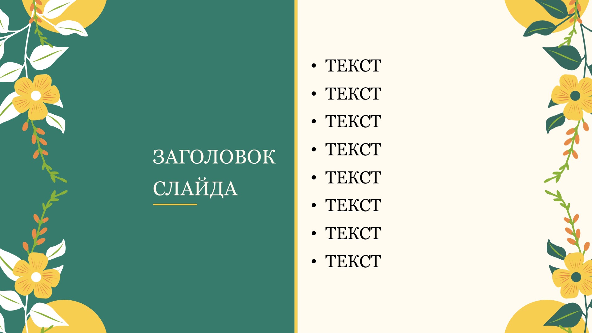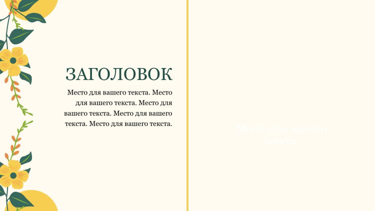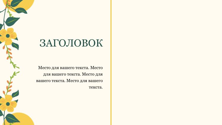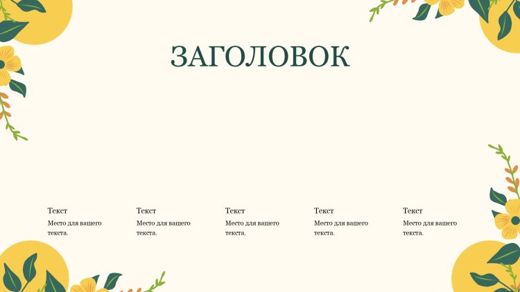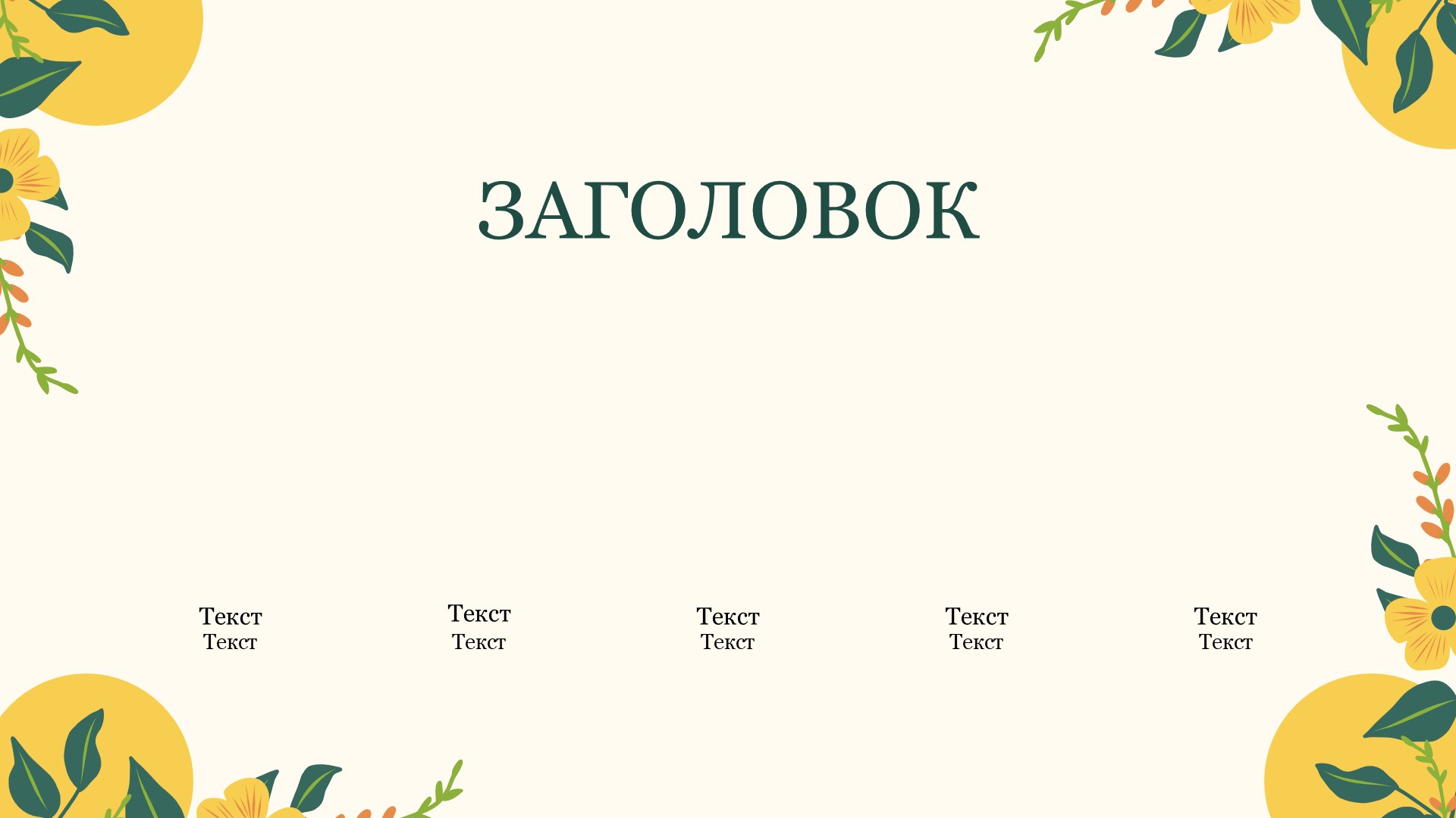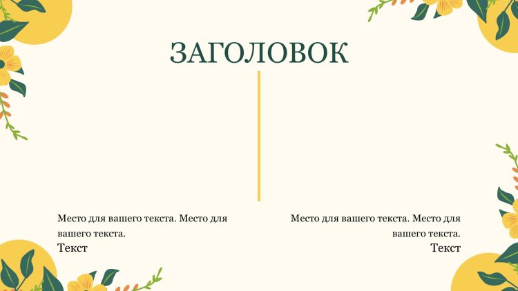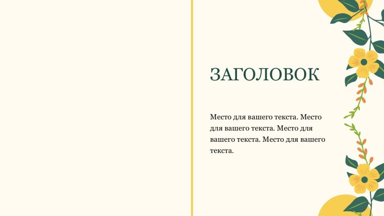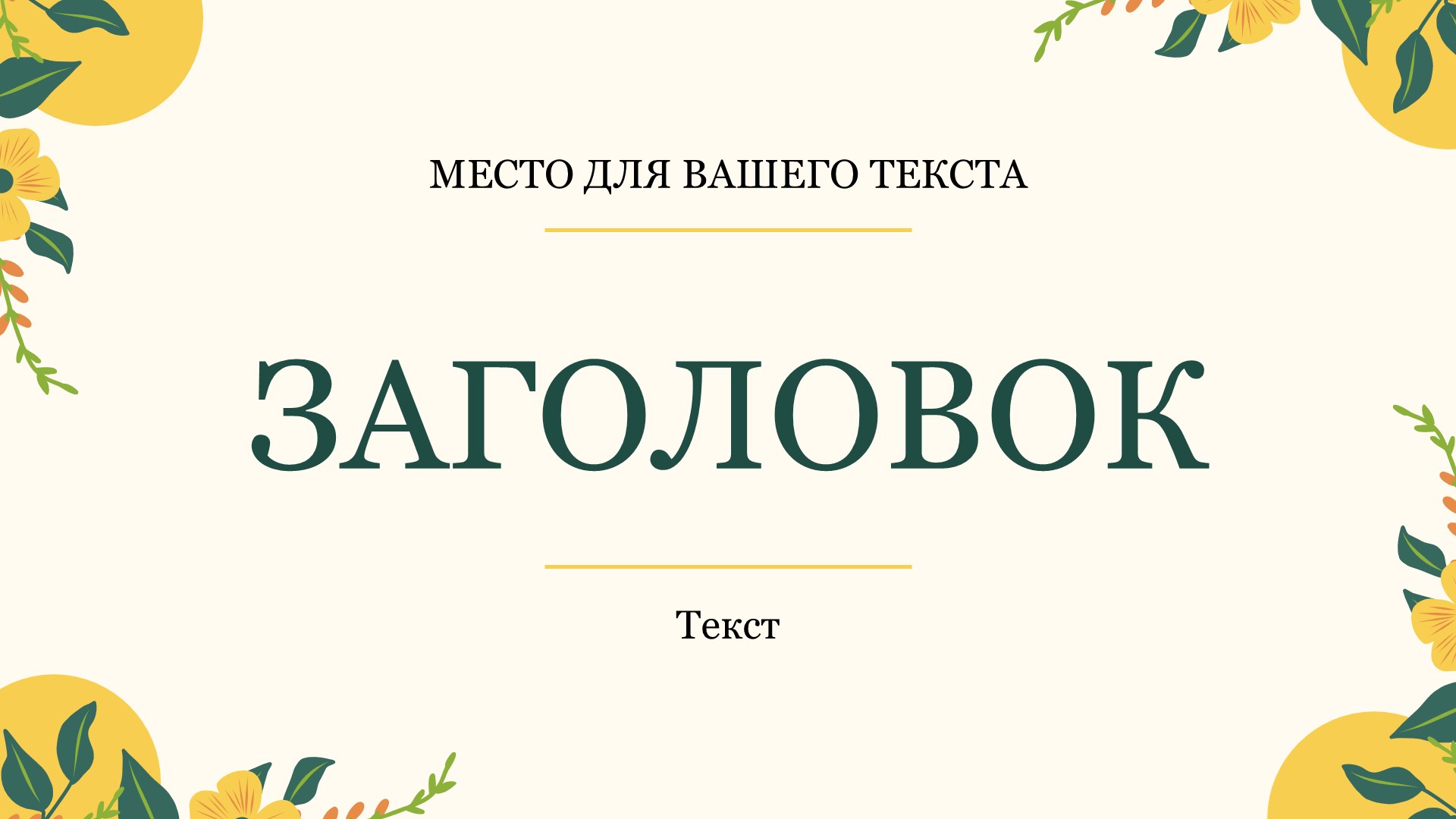 Шаблон презентации Желтый также включает в себя различные варианты макетов слайдов, которые позволят вам организовать информацию логично и эффективно.